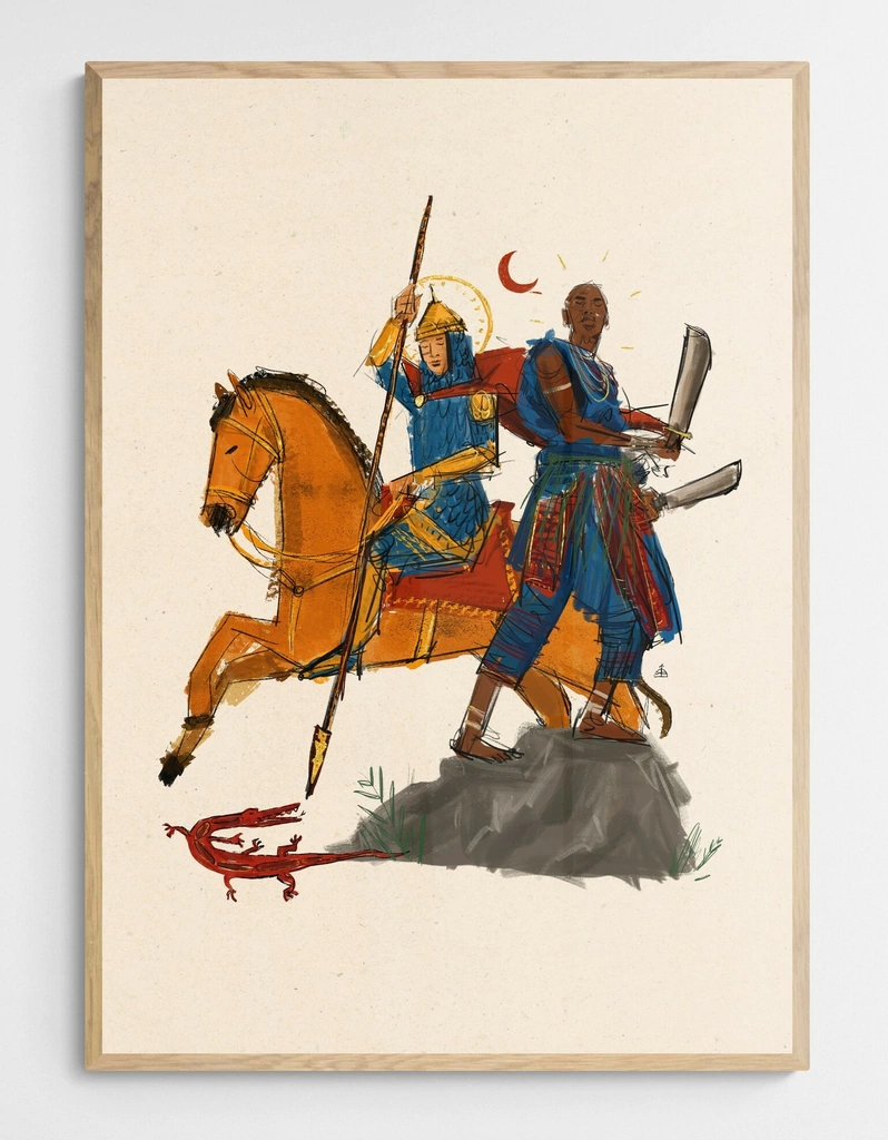 Que Ògún não é São Jorge é evidente, Ògún é preto tem sua Origem na cidade de Ire no Estado de Ekiti, São Jorge é Euro-asiático tem sua nacionalidade em Capadócia na Turquia. Mas, a magia estabelecida aqui fez a fundição dessas figuras o que deve sim ser respeitado e levado em consideração dado a importância do processo de Sincretismo para a própria sustentação dos cultos Afros em outrora. Como já evidenciei em outros textos, de certa forma não há como fazer uma dicotomia entre o candomblé e o sincretismo pois, o sincretismo foi um dos temperos da formação dessa religião, e está impregnando onde muitas das vezes nossos olhos nem se atentam.